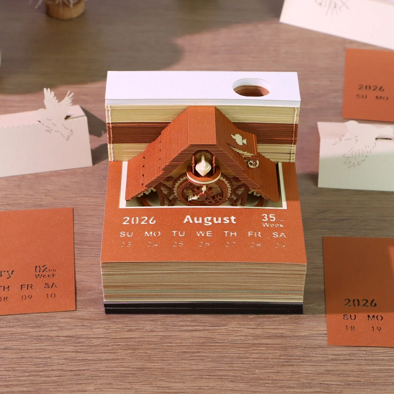 - ăArtistic Cuckoo Clock-Inspired 3D DesignăInspired by the iconic architecture of a cuckoo clock, this 3D memo pad features a finely crafted miniature house created through multi-layer paper stacking and precision laser-cutting. Each page you tear away reveals a new layer, offering the unique sensation of "deconstructing" a tiny buildingâwhere practicality meets artistic elegance.