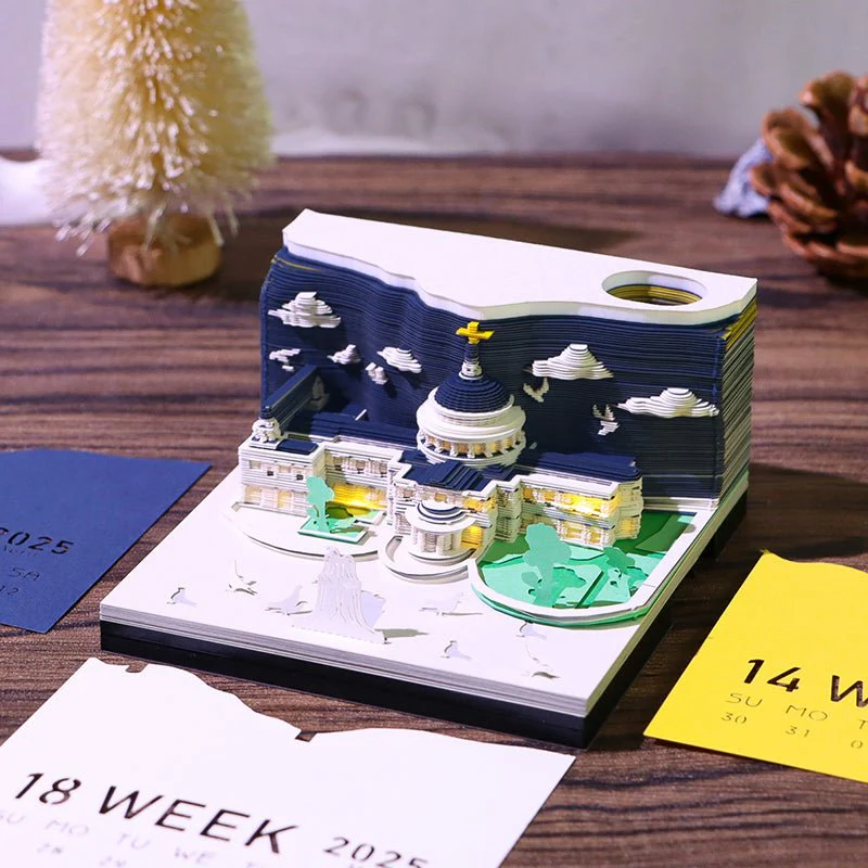 This unique 3D calendar features a beautifully crafted miniature of St Paul’s Cathedral, combining practicality and decoration. It includes a 52-week calendar and functions as a pen holder, bookmark, and desk ornament. Each detail is finely carved, making it a perfect gift for friends, family, or anyone who loves architecture and creative design.